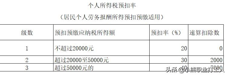 劳务报酬预扣个人所得税:应纳税所得额*劳务报酬适用税率表(如图2)-速算扣除数