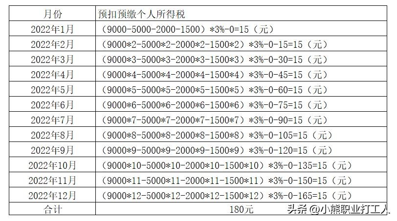 2022年度每月预扣工资个人所得税,如图4,假设每月工资月底发放(是不是很奈斯)