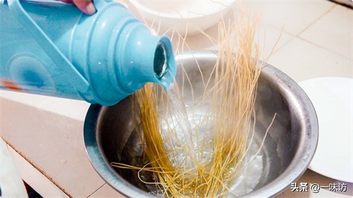 最好在盆上盖一个盖子,开水浸泡粉条时间保持10-20分钟左右即可。