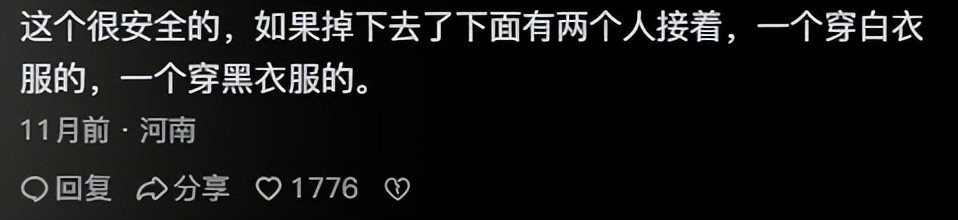肯定啊!这项活动就是拿命玩的。一旦绳子中途断了,那可就去球了。