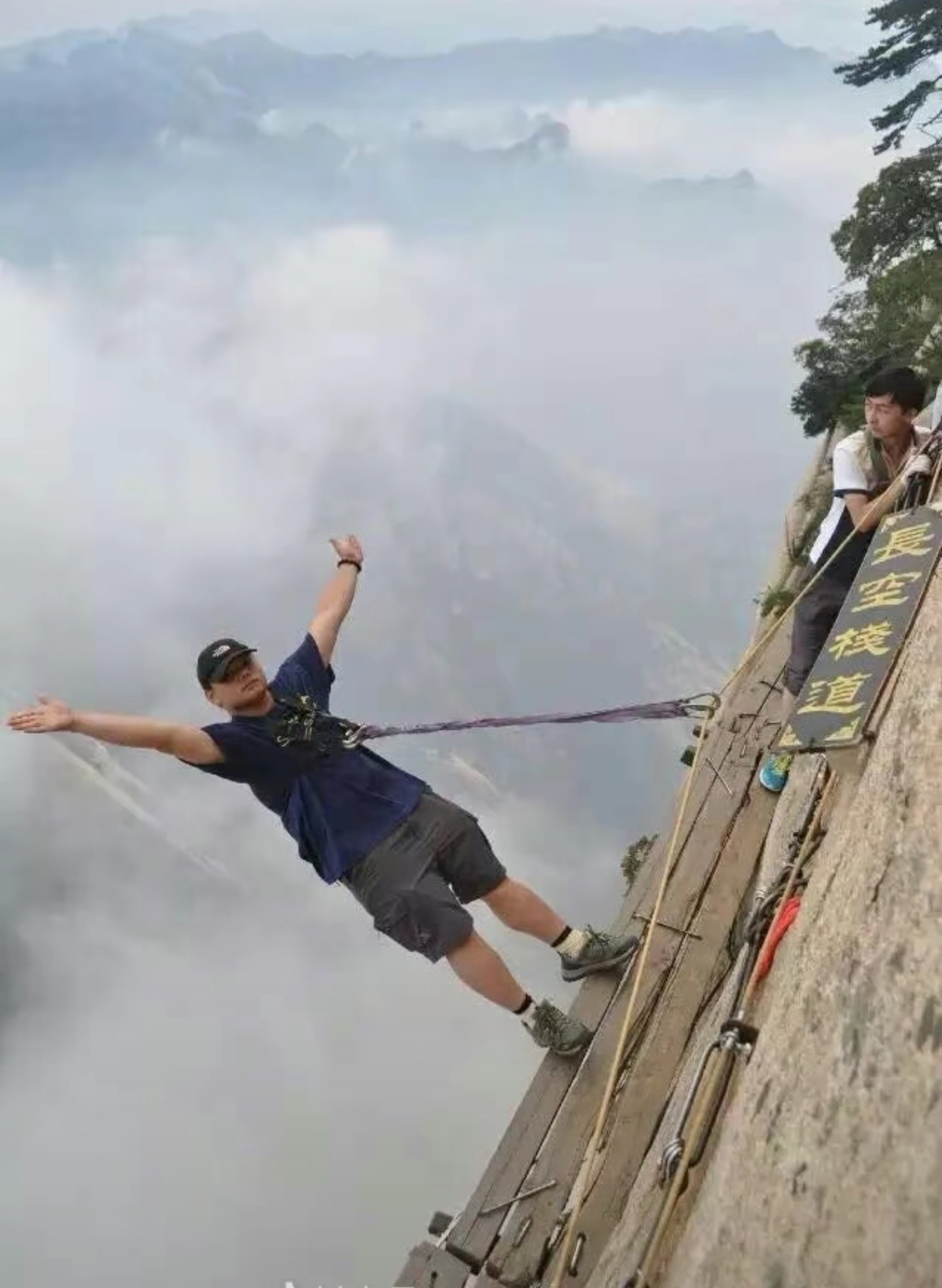 敢走这个的人不牛逼……当年修这条长空栈道的工人才是最最最牛逼的。