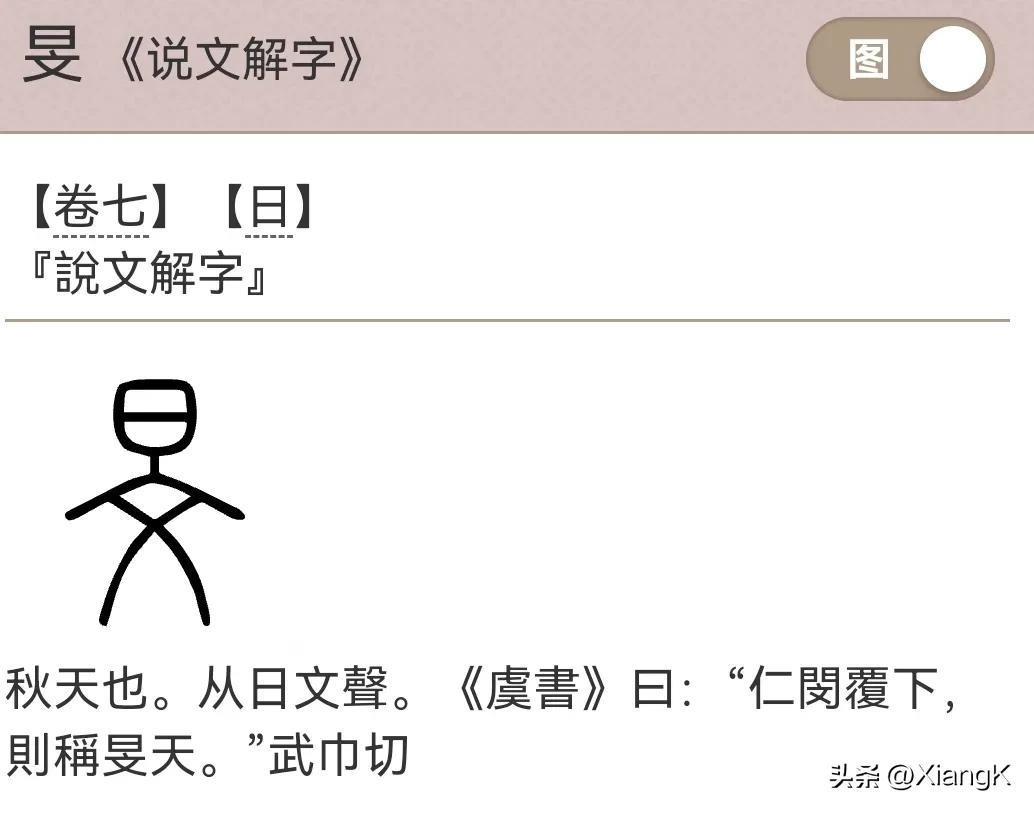 《说文解字》中说:“旻,秋天也。从日文聲。”,将其与秋天联系起来,这是“旻”最直接的含义。
