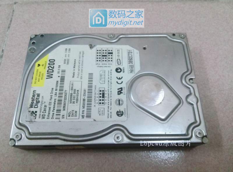 找来一个报废很久了的废硬盘,生产日期是2000年12月20日,型号是WD200BB-00AUA1