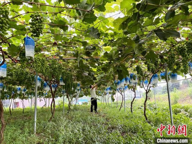 高考前夕,四川眉山一家农场内,粉红的桃子缀满枝头,果香四溢。果树间," 硕士农民 " 刘沈厅与村民们一起忙碌着,正在采摘将发往全国各地的鲜果。不远处的葡萄园中," 阳光玫瑰 " 颗粒饱满、青翠欲滴,不久后将迎来丰收。