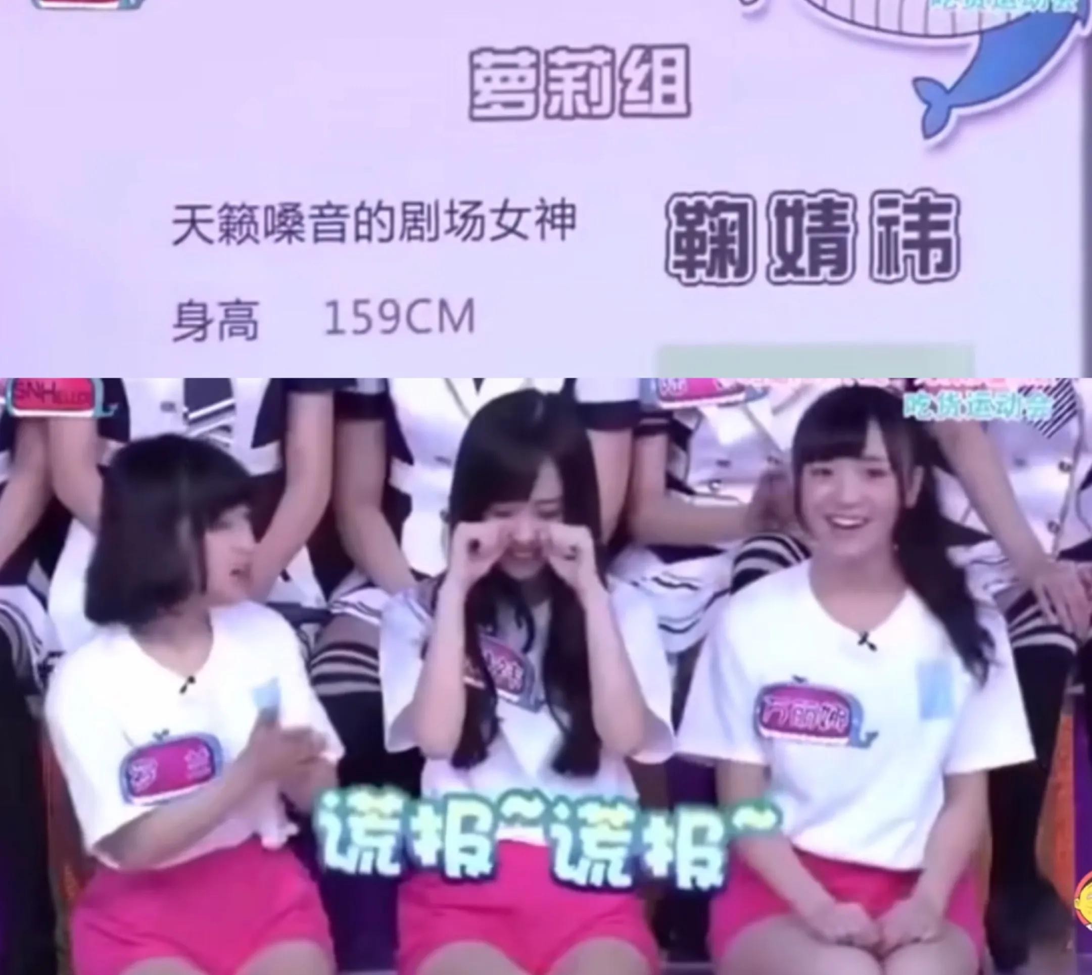 就连坐在一旁的身高158cm的队友站起来都比159cm的鞠婧祎要高出几公分,这波打脸来得有点快。