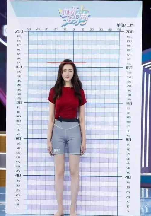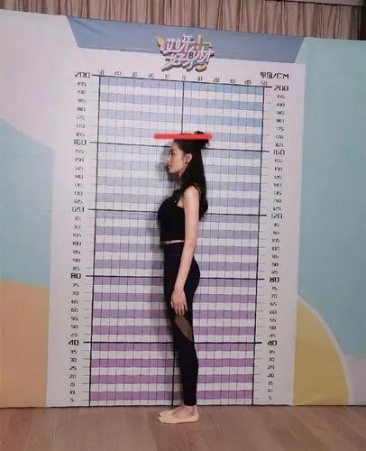 从图片中看,张天爱测量身高倒是十分严谨,赤手赤脚甚至连袜子都没穿,除去头顶丸子头和头发的高度,165cm的身高水分应该不大。