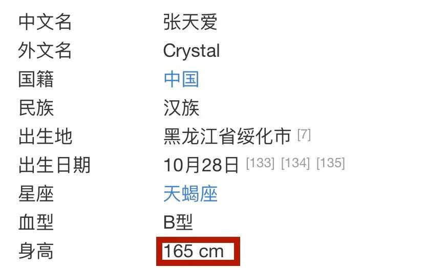 张天爱除了变来变去的“年龄梗”之外,身高的多少也是一个谜。