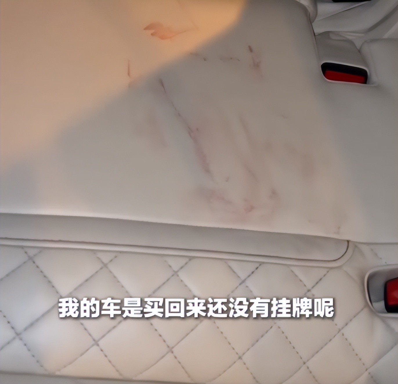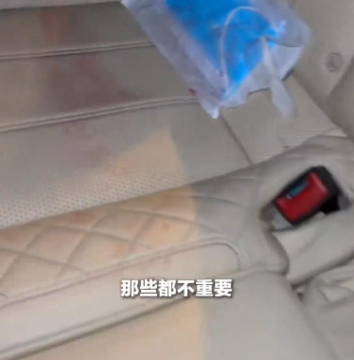 到达医院后,车主看着白色坐垫上留下的红色血迹,只是默默地拿着布擦洗,并没有任何怨言。