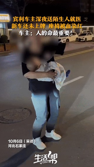 过程中,伤者鲜血染红新车座椅,车主表示:“洗不洗车不重要,人命最重要。”此善举获网友点赞。