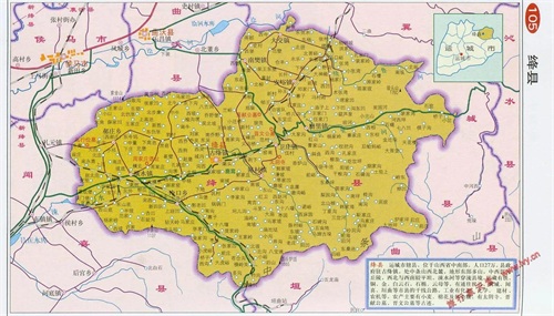 绛县——汉为闻喜县地,北魏太和十八年(494)置南绛县,属正平郡,初治会交川,后移治车厢城(今县南十里)。建义初为南绛郡治,恭帝时改为绛县,自此绛县之名历代均不改。隋初属绛州,义宁元年(617)改属翼城郡,唐武德元年(618)移今治,属浍州,四年属绛州。五代、宋因之。金兴定四年(1220)割属翼州,元,明俱属绛州,清初属平阳府,雍正七年(1729)还属绛州。民国属河东道。1946年解放。