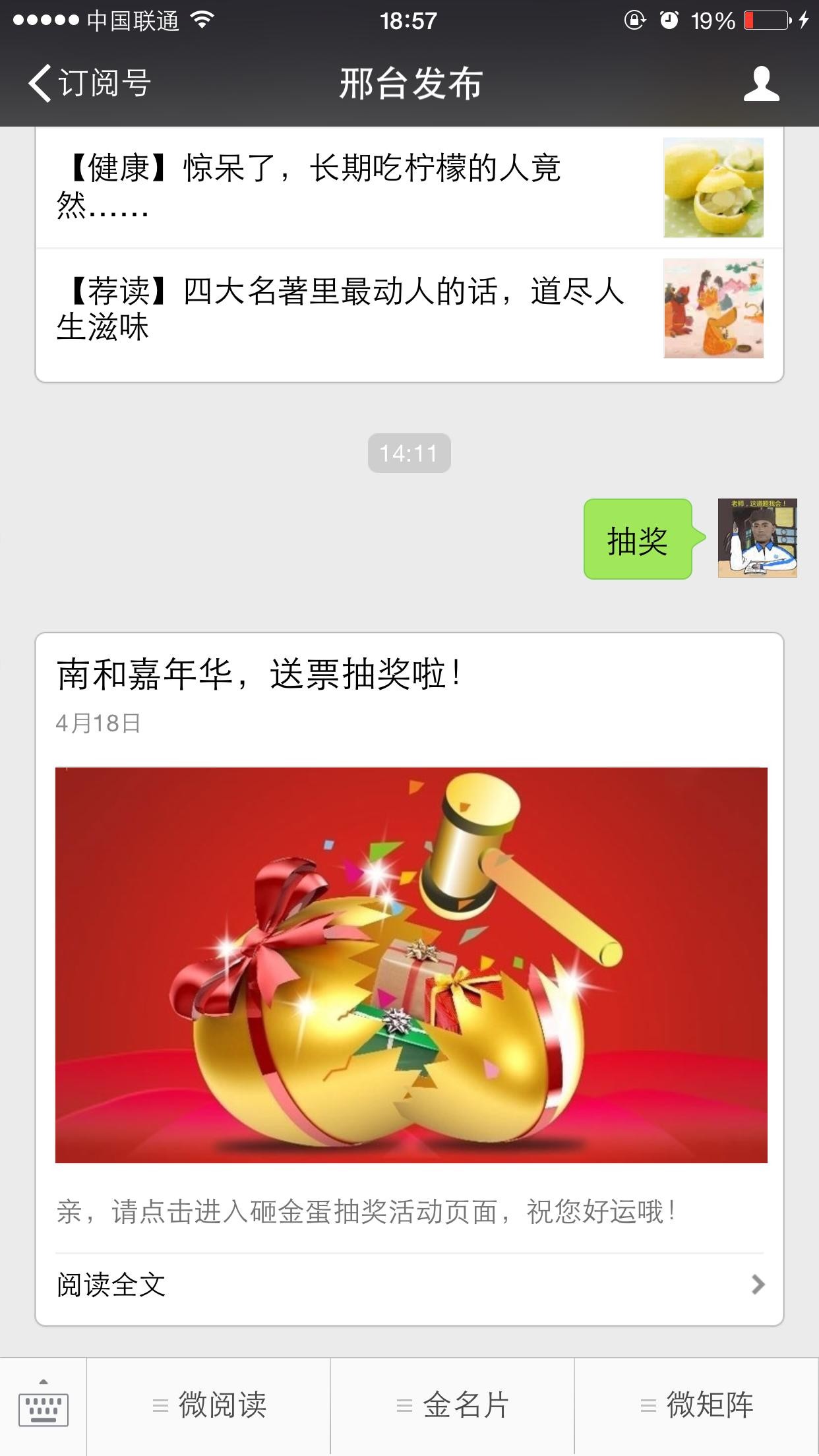 我们不转发,不积攒,不用分享朋友圈,你只需要回复“抽奖”二字,进行一个抽奖的小活动即可,中奖几率惊人,先到先得!