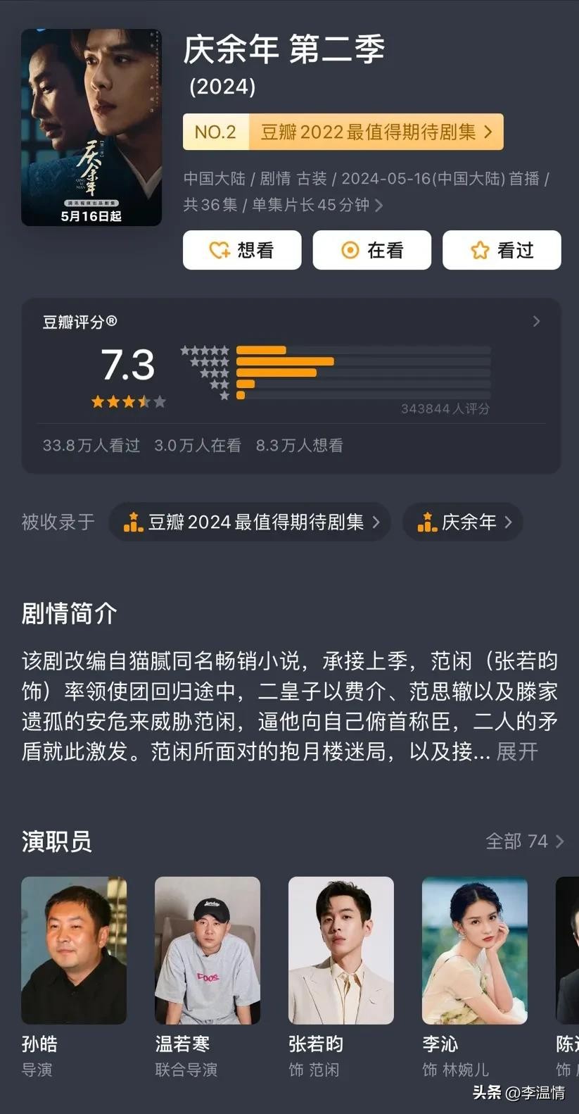 2024年豆瓣评分最高的十部国产好剧