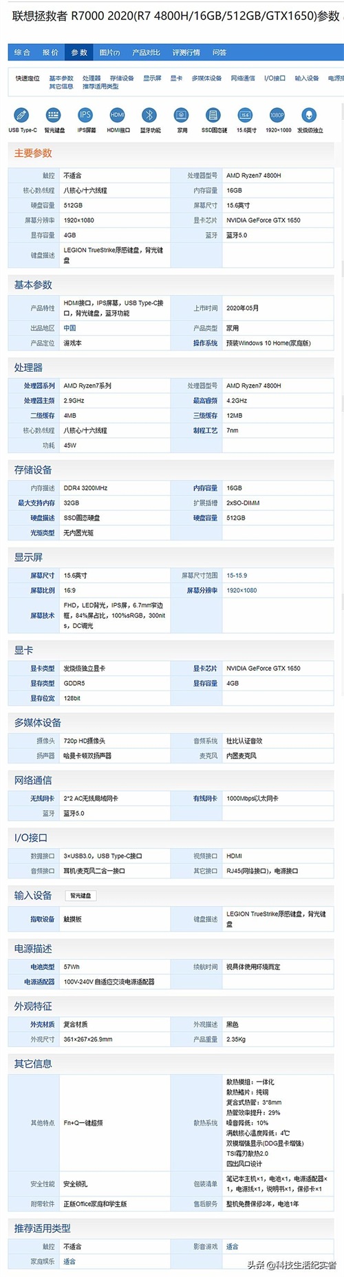 第四款:联想拯救者R7000(R7-4800H/16G/512G/GTX1650/15.6寸高色域)【参考价:5799元】