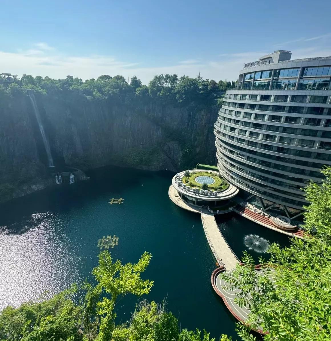 这里又叫深坑酒店,被誉为世界第九大奇迹,它是世界上首个建在废石坑的酒店。因为地质复杂,光是设计论证就耗费七年之久,经过长达八年之久的建设,深坑酒店才得以建设完成。其建设难度在世界建筑史上绝无仅有,不仅如此,酒店方将整个废坑进行规划,从之前的废弃之地,成为了一个世外桃源。每位来此的住客,无不惊叹。