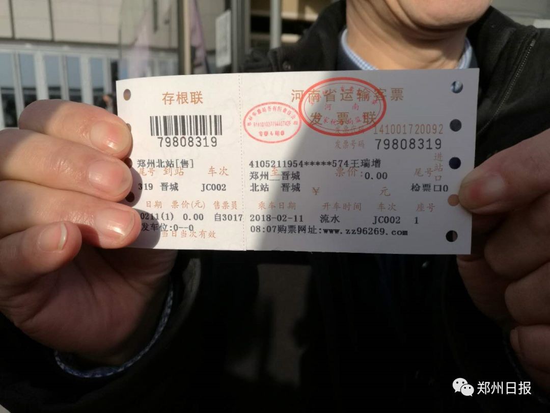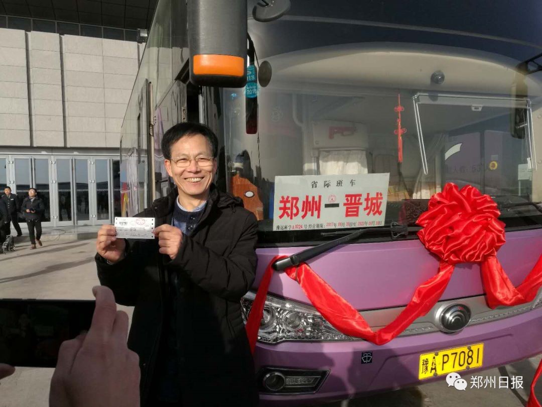 在郑州工作、前往晋城过年的王先生成为省际公交的第一位乘客。“感到非常幸运,人生中第一次买到0元票。”乘客王先生昨天晚上在网上购票时看到了有0元票,开始还不敢相信,今天一早取票,发现真是0元票,感觉十分高兴。他说,过去从郑州到晋城的车票为65元一张。