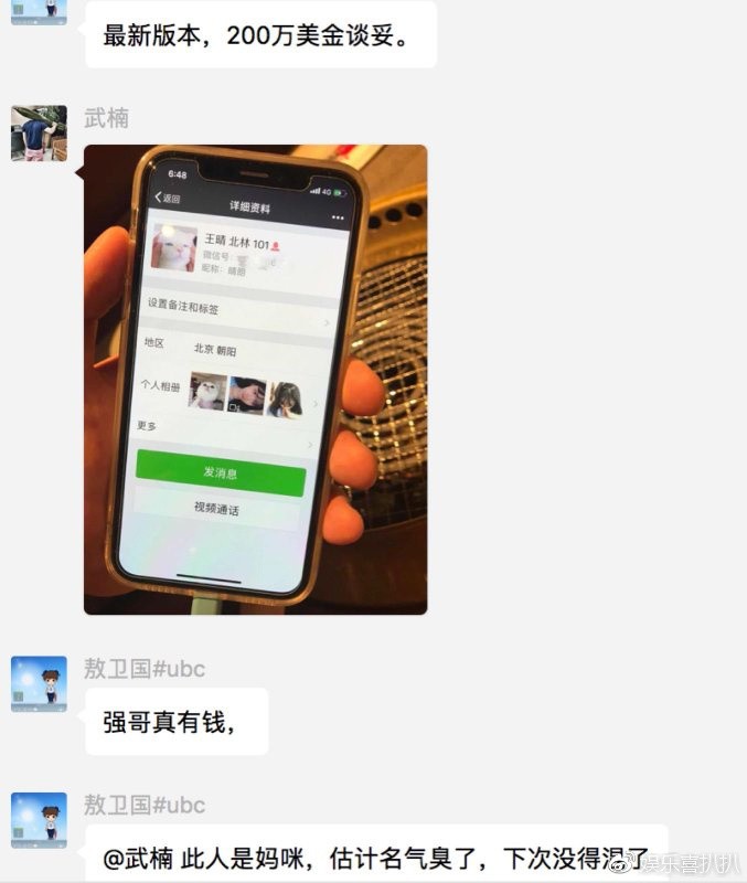 据网曝的另一张微信聊天截图显示,在一个名叫““明大法学院同学会”的微信群中,有人求助问有一名明大同学被国内一知名企业家性侵并且非法限制自由,目前对方已经被保释,受害者希望得到律师帮助。该求助者同时称,潜在被告是中国公民,在美国参加商务活动。