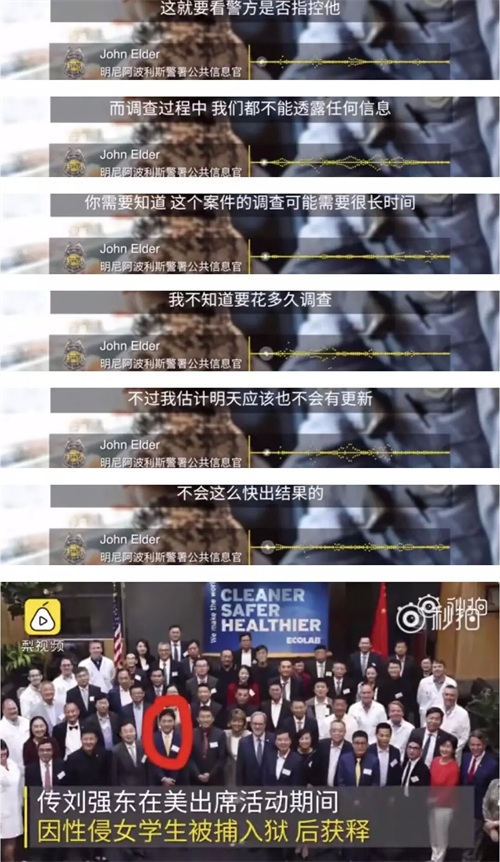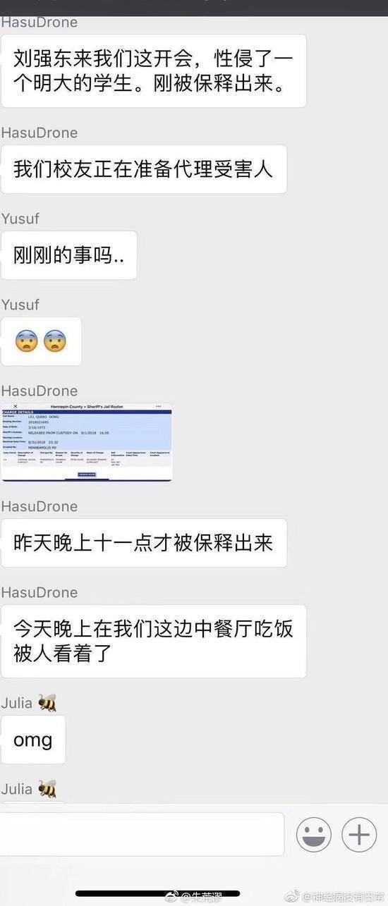 网传刘强东在美涉性侵女大学生被捕,并放出截图。