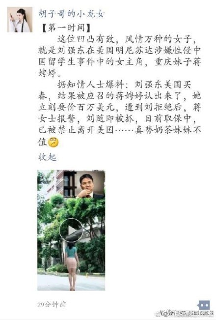 刘强东性侵被捕事件女一号曝光——重庆蒋娉婷