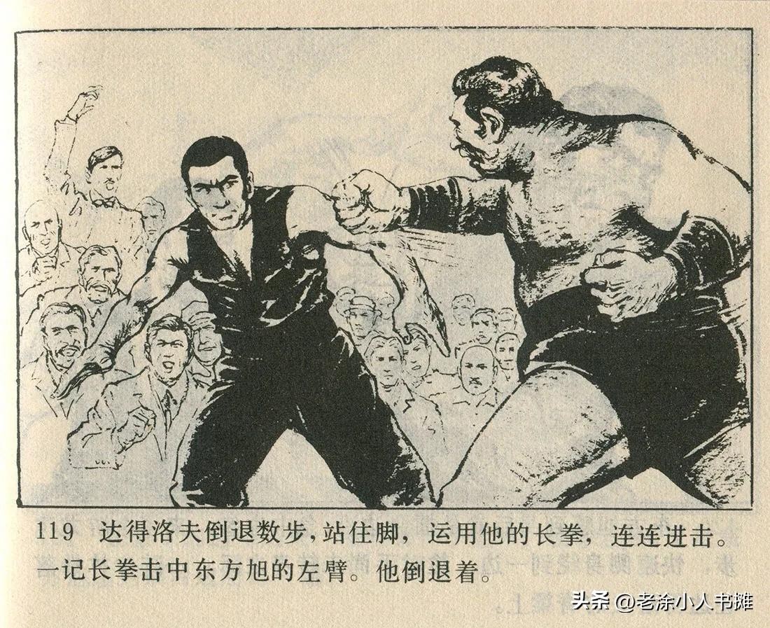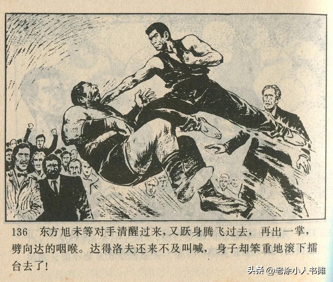 东方旭使出八卦掌击败达得洛夫。这两部电影当年都很受欢迎,是内地比较早的武打片,都是爱国主题。