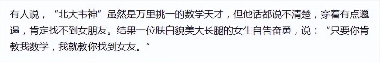 北大“韦神”找不到对象?曾被女神表白:教我数学,我做你女朋友