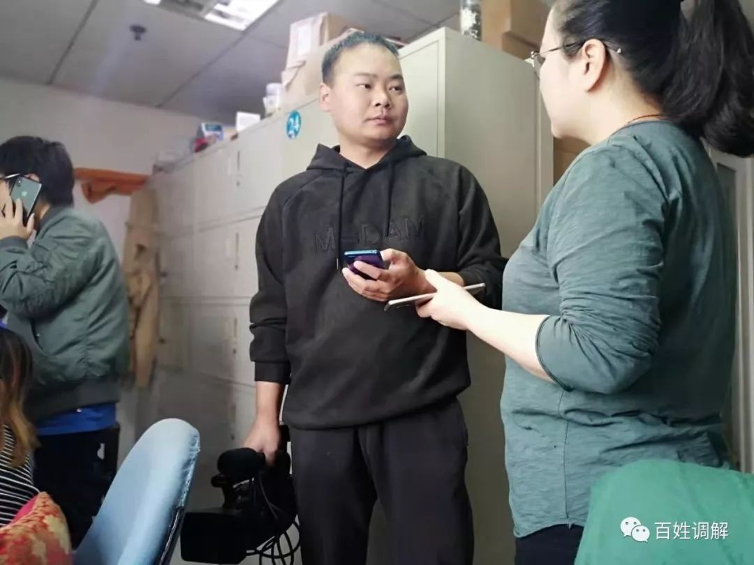 调解员王瑞萍正在跟当事人了解求助事情
