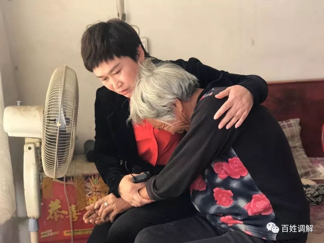 调解员王瑞萍正在宽慰打开心结痛哭的大娘