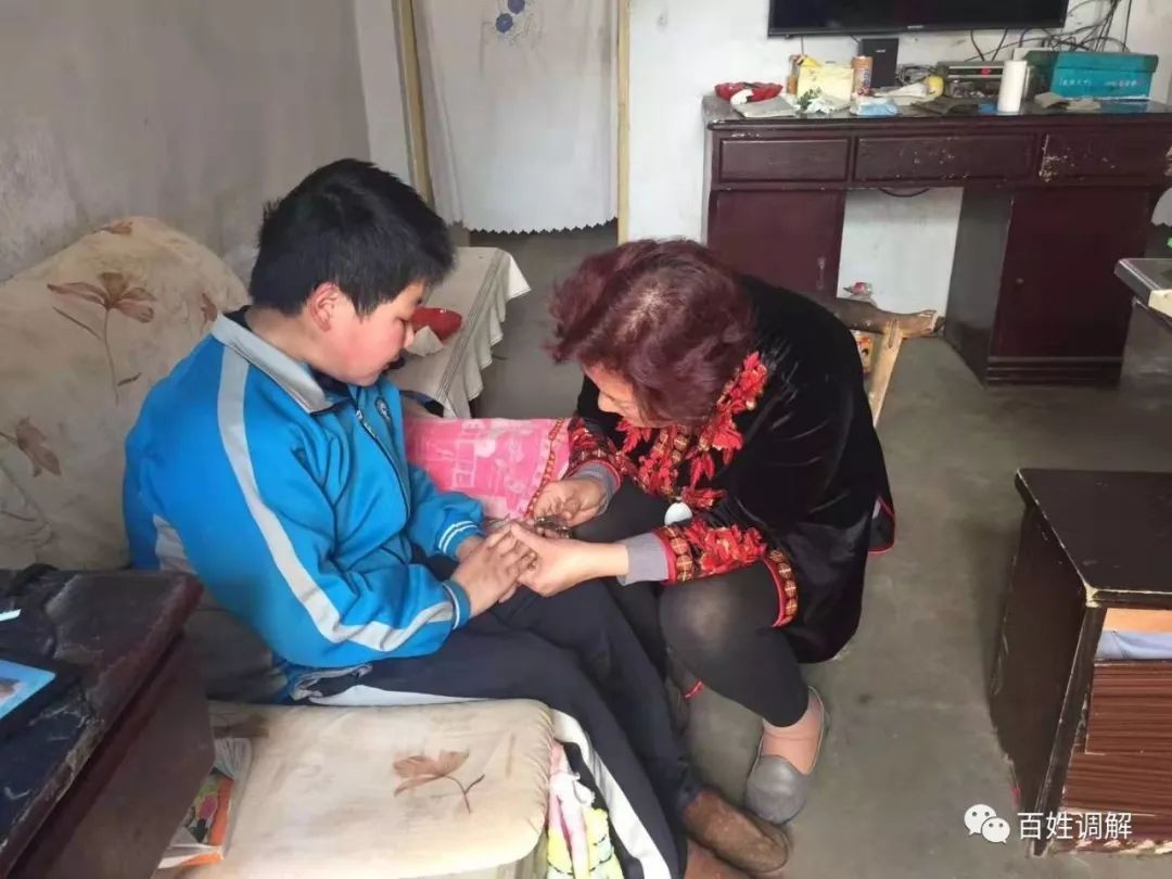 调解员许桂荣帮缺少父爱母爱的孩子剪指甲