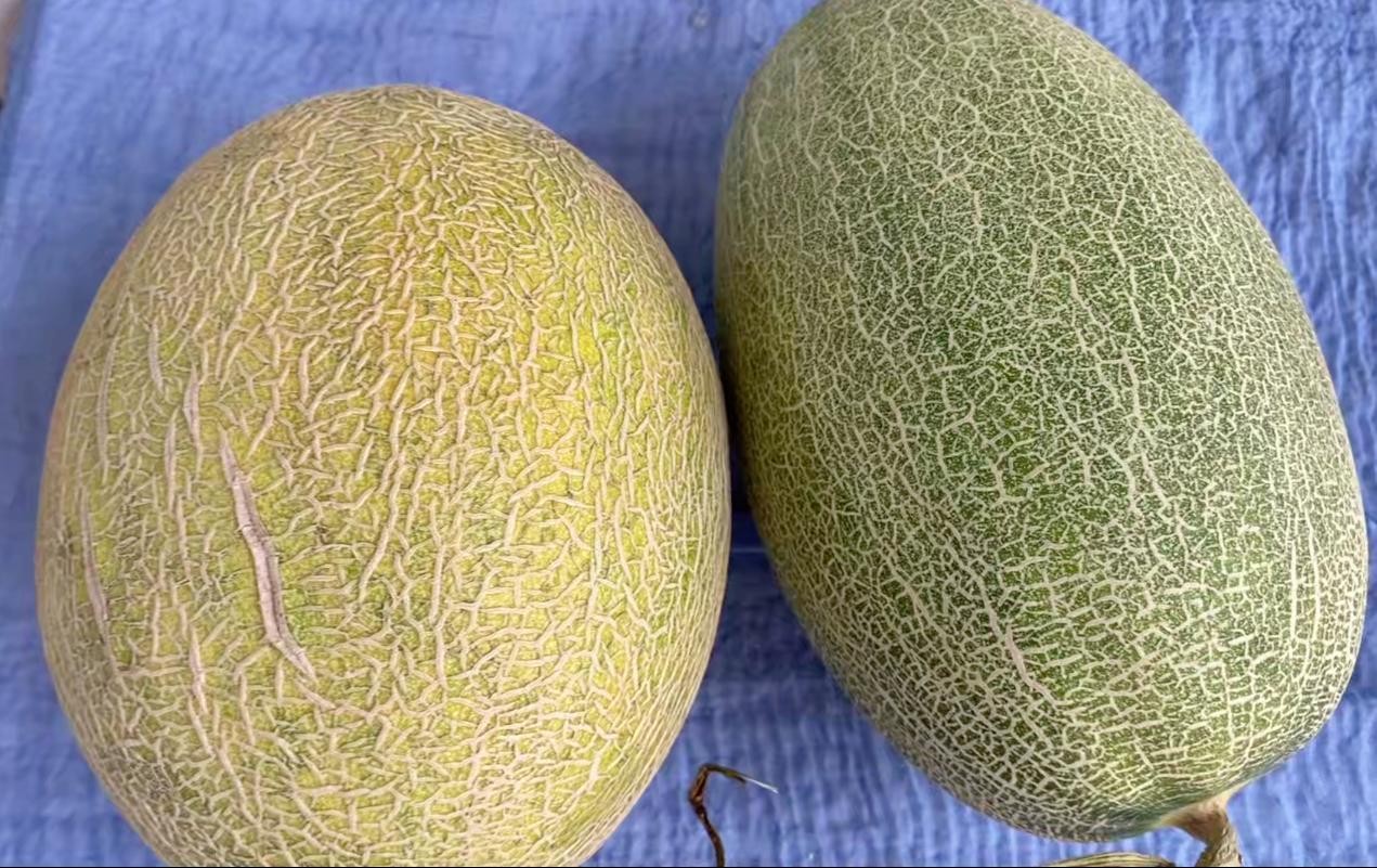 第一,我们可以观察一下哈密瓜的纹路,如果说哈密瓜的纹路越深,那证明这个瓜的甜度会比较高。而且它的纹路越深,证明它的生长时间是比较长的,同时我们看一下其他的瓜它的纹路是比较浅的,而且的分布不均匀,那这个很可能就是瓜皮比较厚。一般来说它的成熟度是没有那么高的,甜度也是没有那么高的。所以朋友们在挑选的时候一定要看一下纹路,看纹路是不是比较宽比较大,如果说看起来特别的宽比较大的,那证明这个瓜是比较甜的,建议大家购买。