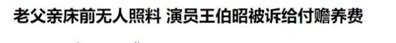 事情过去之后,王伯昭后来又被自己的父亲一纸诉状给告上法庭,要求王伯昭支付赡养费已经每个月都需要看望自己。