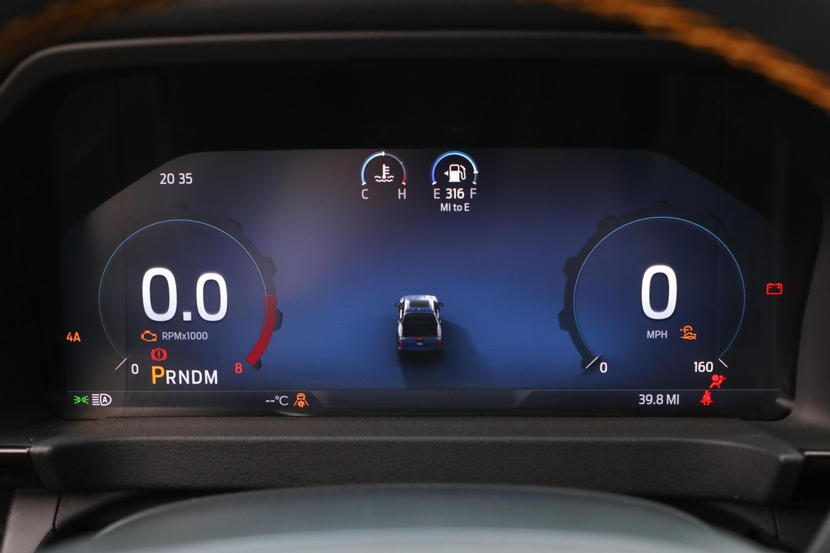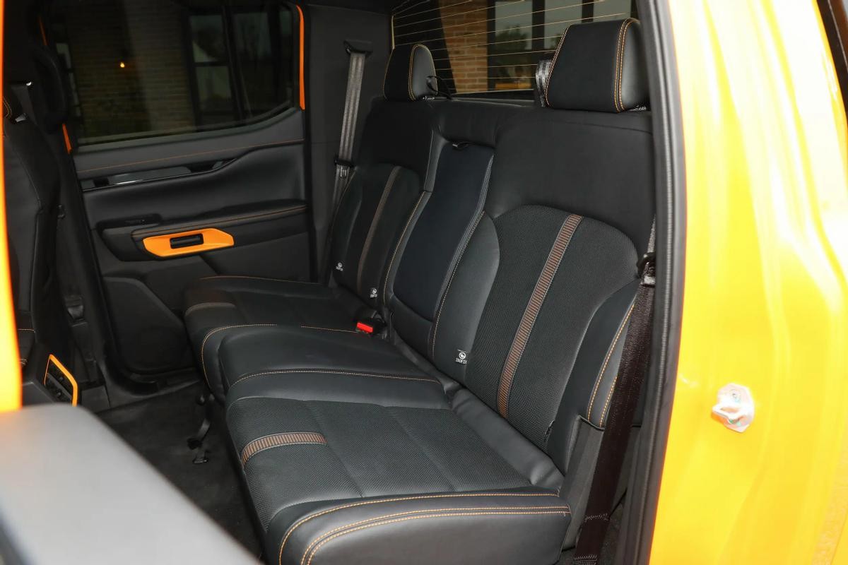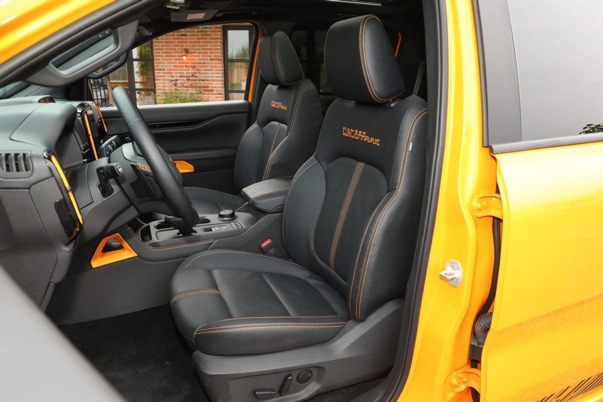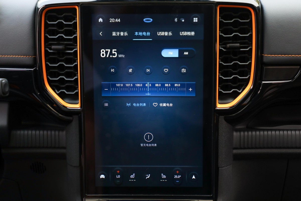 内饰方面,福特游骑侠Ranger以黑色为主色调,搭配橙色装饰,营造出一种活力而粗犷的氛围。中控台上配备了一块12.1英寸的触摸屏,内置了高通骁龙8155芯片,搭载了最新的SYNC 4车机系统,支持GPS导航系统、蓝牙/车载电话、CarPlay、车联网、Wi-Fi热点、OTA升级以及语音识别控制系统等功能。方向盘上集成了多功能按键,方便驾驶员操作。仪表盘采用了12.3英寸的全液晶仪表,可显示多种行车信息。