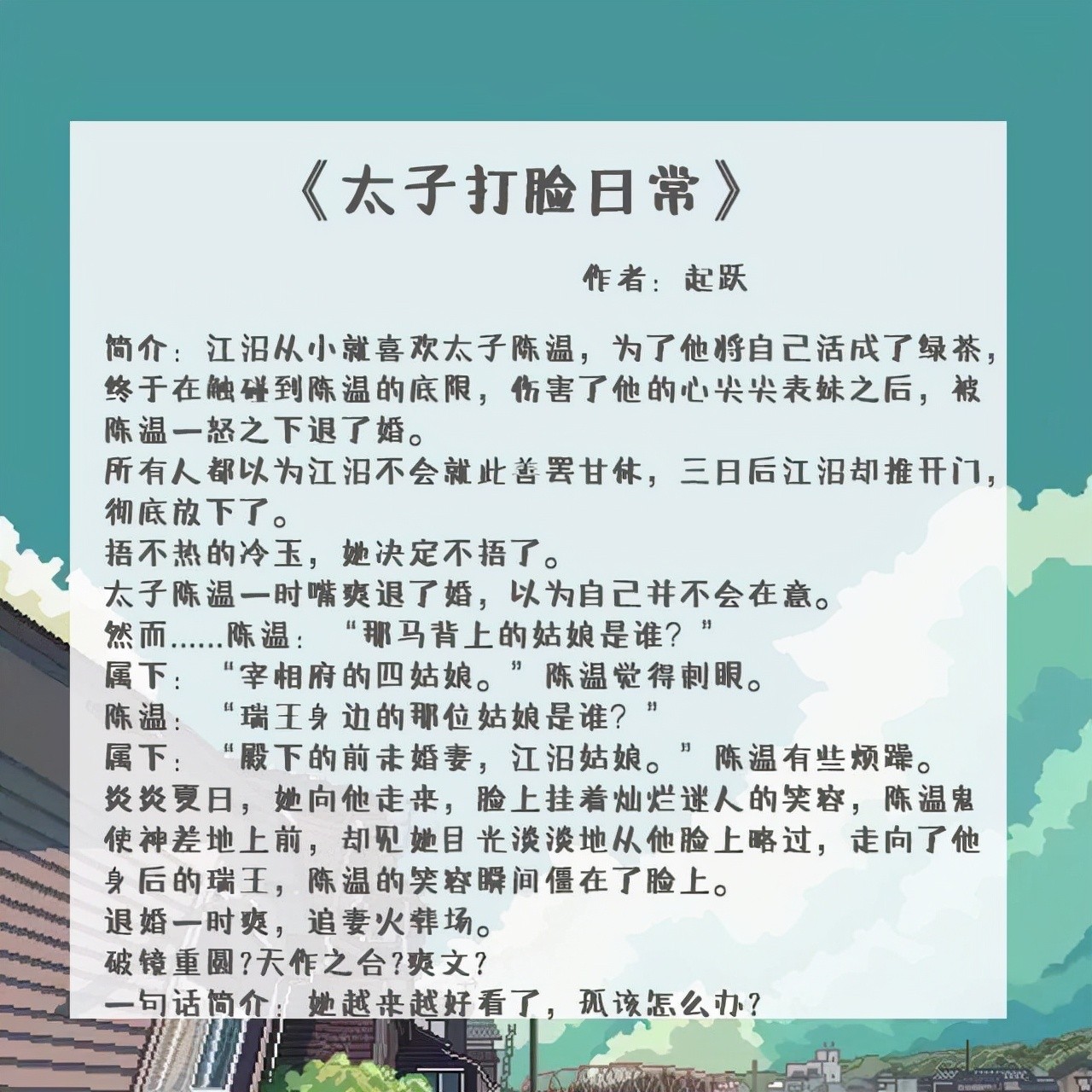 短书评:过往十年,陈温是太子,是天之骄子,而江沼是他的未婚妻。他享受着她的好,却无所付出,直到江沼心灰意冷,转身离开,陈温才发现自己早已陷入她用温柔织的网。男主追妻火葬场,文笔自然简练,古色古香,故事曲折饱满,不拘泥于男女情爱,更有家国大义以及人性凉薄。