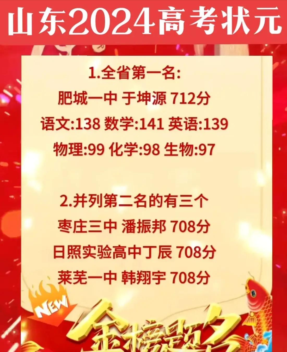 2024年山东省高考状元出自肥城一中 总分712 各地状元出炉 网友热议