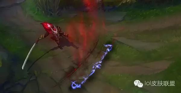 Q技能是丢出一道带有血色闪电的忍者飞镖。请注意细节特效做的也是非常到位,尾线的设计完全符合飞镖射出时所带的气痕!
