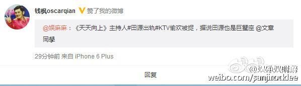 在这次的事件中,钱枫也插了一腿,据说,他给田源出轨的微博点赞了!!!你敢信!