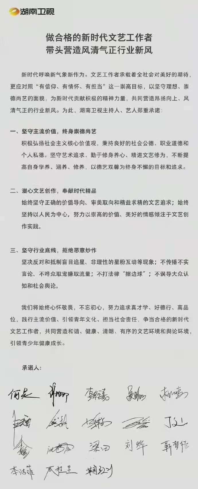对于前段时间,湖南卫视十几名主持人做出艺德承诺联合承诺一事,网友感觉非常荒唐。