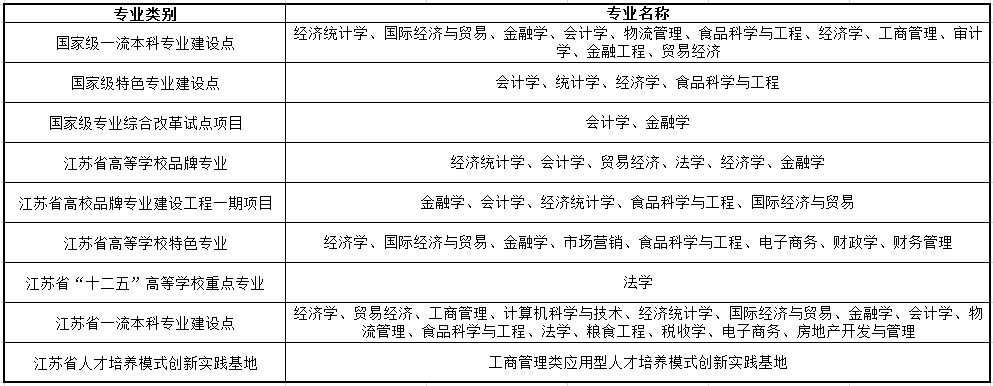 在教学建设方面,南京财经大学有国家级一流本科专业建设点18个,国家级特色专业建设点4个,国家级专业综合改革试点项目2项,国家级人才培养模式创新实验区2个。
