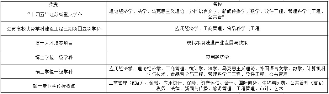 在学科建设方面,南京财经大学有应用经济学博士后流动站,应用经济学博士学位授权一级学科点,硕士学位授权一级学科13个,硕士专业学位授权点16个。拥有应用经济学、工商管理、食品科学与工程等江苏高校优势学科3个,理论经济学、法学、马克思主义理论、外国语言文学、新闻传播学、数学、软件工程、管理科学与工程和公共管理等“十四五”江苏省重点学科9个。“农业科学”“工程科学”“一般社会科学”进入ESI国际学科排名全球前1%。