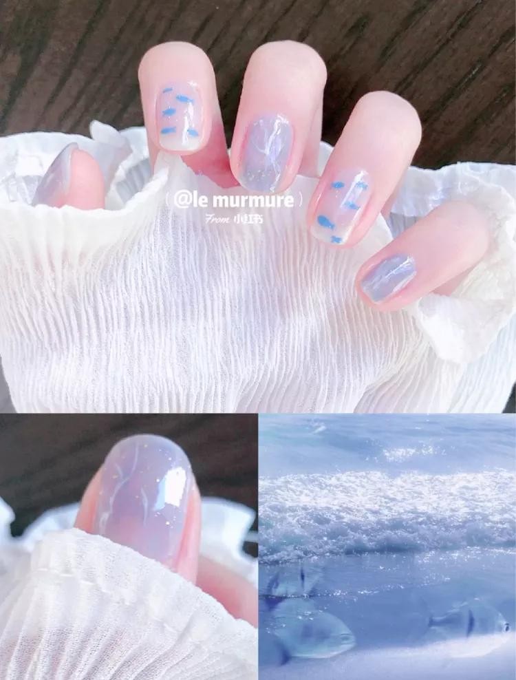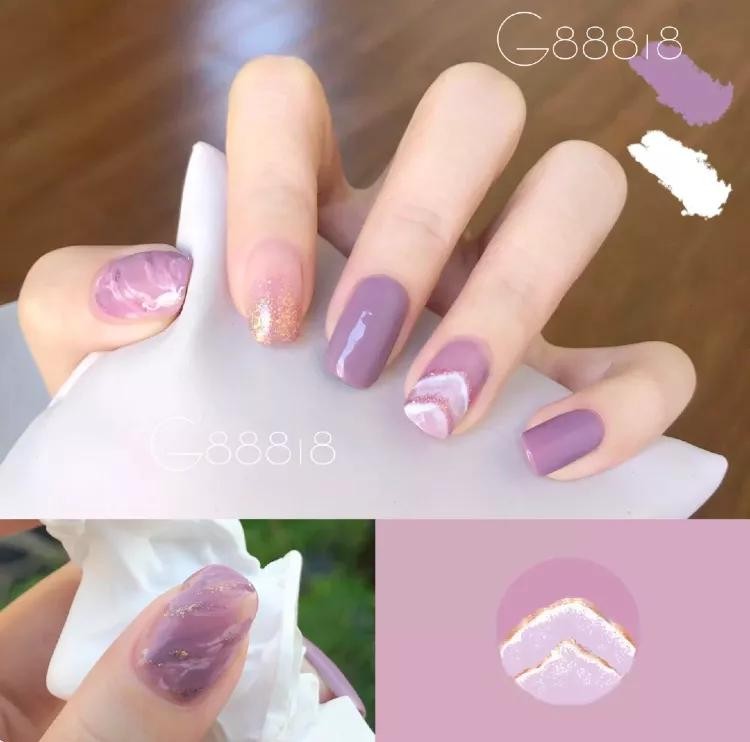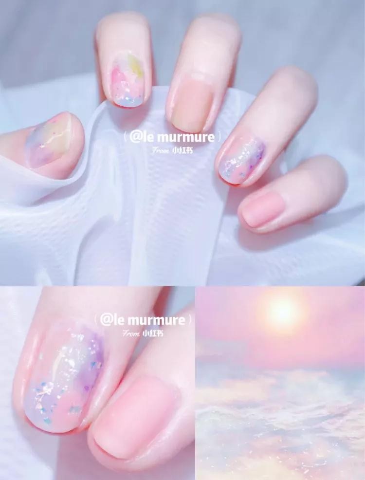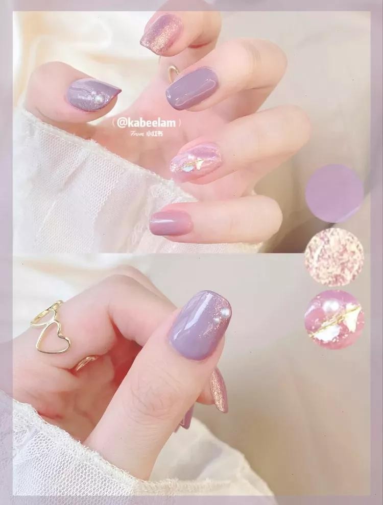 比如这个冰淇淋香芋紫色,饱和度低,完全不显黑,温温柔柔的气质!随便加一些细闪和亮片就很好看了。