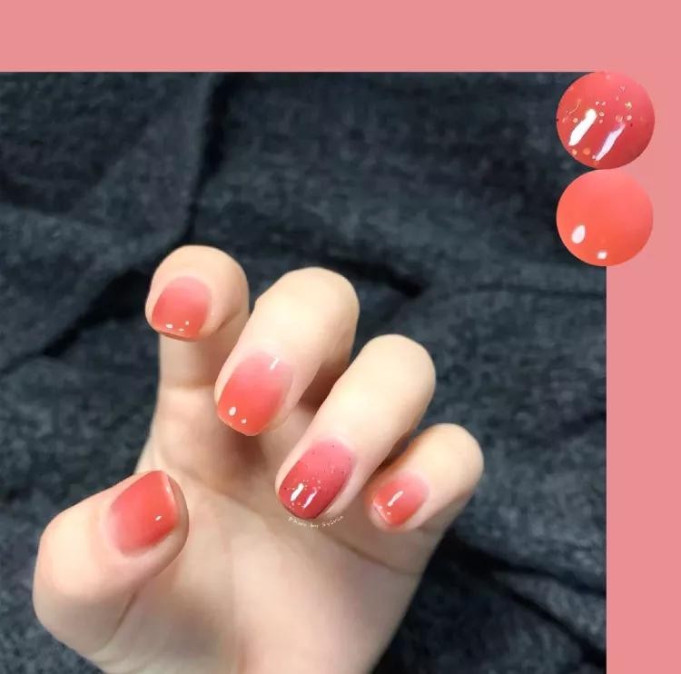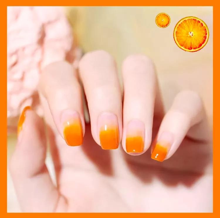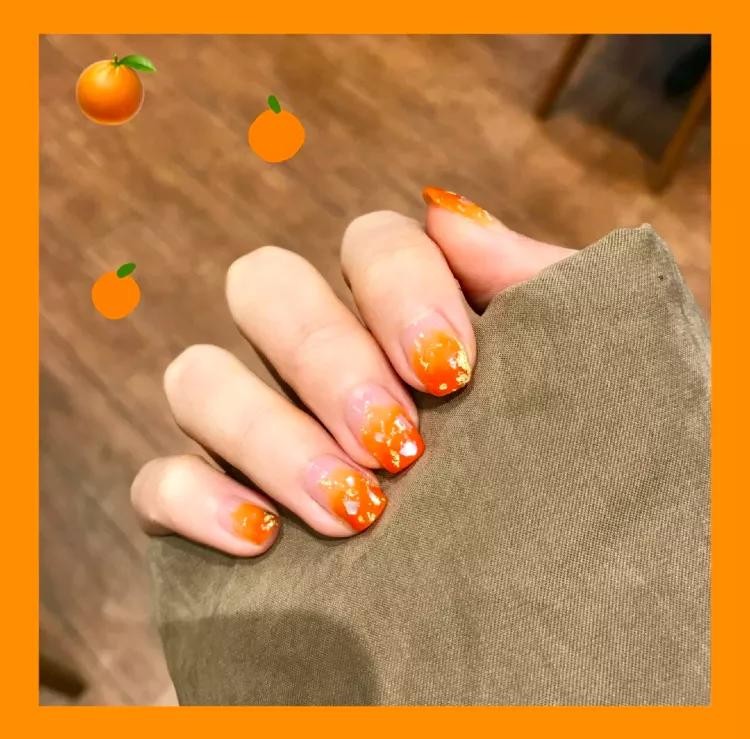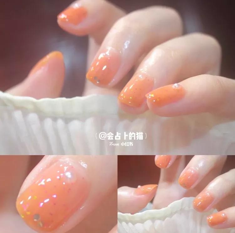 橙子汽水味的美甲,我先干为敬!简约渐变款式,元气满满的颜色,显白度也满分!