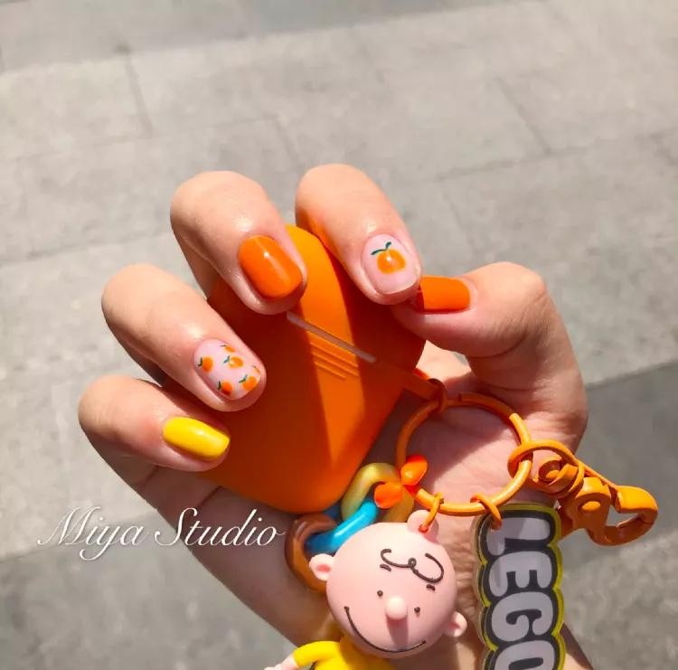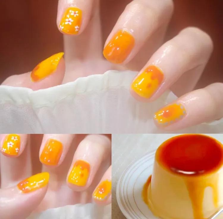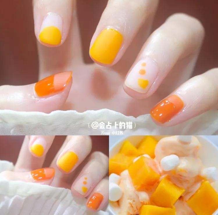 芒果奶昔味儿的美甲,看着都要流口水了。