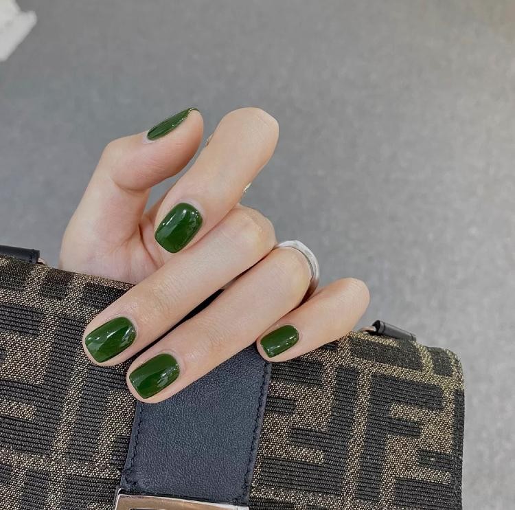 纯色系的墨绿色很有复古气质,这个颜色我强烈推荐,因为真的太显手白了!