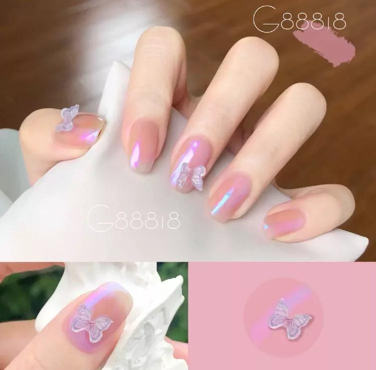如果你还觉得不够仙,就看看这款蝴蝶风美甲吧,蓝紫色极光,仙气飘飘,没有过多的装饰,但特别耐看!这款我真的太爱了!