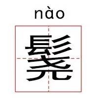 下面这个字的读音是nào,中原官话,形容腮颊多胡须。
