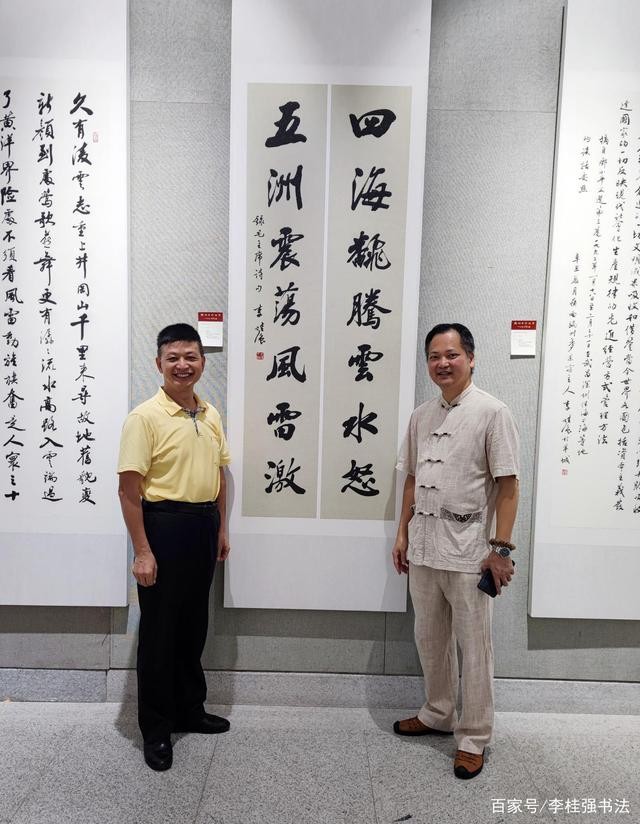刘明虎(左)与李桂强先生在其参展作品前留影