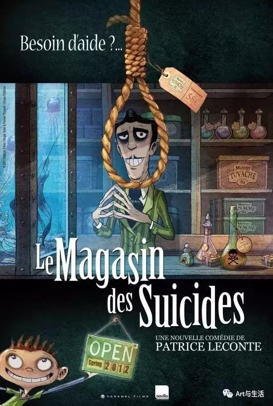 在《自杀专卖店》中,创作者构建了一个近乎死城的社会,这个社会中几乎所有的人都在绝望,寻找着死亡的方法,以至于政府不得不颁布法令,严禁民众在公众场合自杀。而在这样的环境中,一间专门兜售自杀用品的专卖店中却诞生了一位整天笑嘻嘻,乐观向上的小男孩,他不仅独乐乐,还渴望众乐乐。于是就有了影片中孩子们想尽办法阻止他人自杀,创造欢乐,甚至有捣毁自杀专卖店的野心的故事。当然,结果是以欢乐收场。