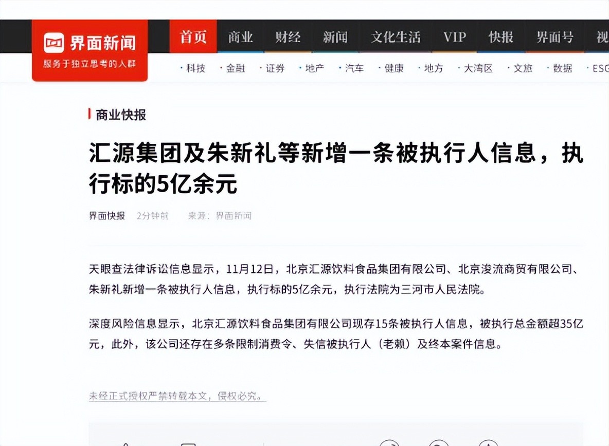 朱新礼急需投资人入股,能有强大的资金流注入汇源果汁。