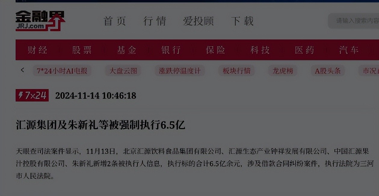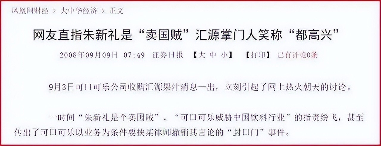 要知道,当年可口可乐也要收购汇源的,如果当时朱新礼卖掉,他个人可以直接套现70亿完美离场,为何落到如今凄惨的地步?
