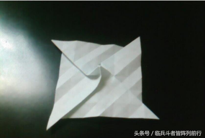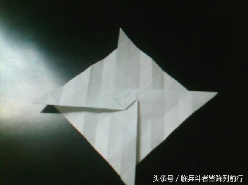 8、折完四边后,如图翻折(如不懂,请仔细对比7、8两图)。