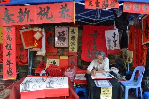 另外,春联也是越南人必不可少的年货。越南最早的春联都用汉字书写,越南文字实行拼音化后,越南春联仍按照方块字的格式,从上往下书写,把美好的祝福写在春联中,祈求未来一年风调雨顺,生活美满。