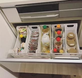 厨房的香料、调料和各种油类分别装在不同的文件盒,分类会非常清晰。